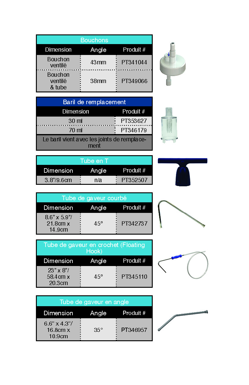 Comprend un tube flexible de grade médical, deux embouts de tuyau renforci d’un ressort métallique et sachet de lubrifiant.