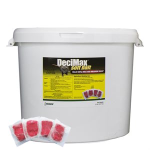 Les blocs DeciMax de NEOGEN contiennent l'ingrédient actif Bromadiolone, un actif de deuxième génération éprouvé et efficace. Les rats et les souris peuvent consommer une dose mortelle en une seule nuit d'alimentation, les premiers rongeurs morts apparaissant quatre ou cinq jours après le début de l'alimentation. Les blocs DeciMax ont des arêtes pour favoriser le rongement.