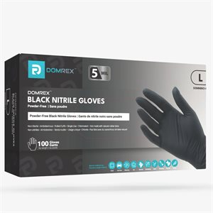 Gants nitrile DOMREX noir 5 mil. sans poudre (L) bte / 100
