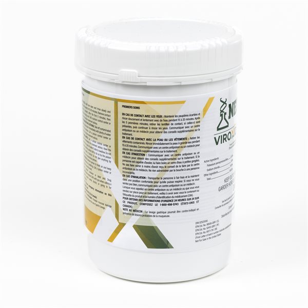 NEOGEN® Viroxide Super™ est un désinfectant en poudre à base de peroxygène qui offre une désinfection rapide à large spectre dans le cadre d'un programme de biosécurité complet. Le Viroxide Super peut être utilisé pour désinfecter les bâtiments de production animale ainsi que les équipements, les pédiluves, les véhicules et d’autres surfaces dures non poreuses.